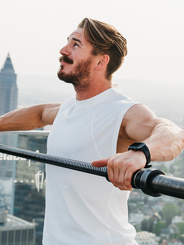 For example. A personal trainer notices during a session that his client isn’t quite ready for dumbbells yet, as they require too much coordination, while barbells offer too little freedom of movement. To prepare his client for dumbbell training, he starts with the Squeezebar, combining the stability of a barbell with the freedom to move, easing the transition